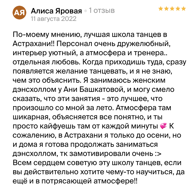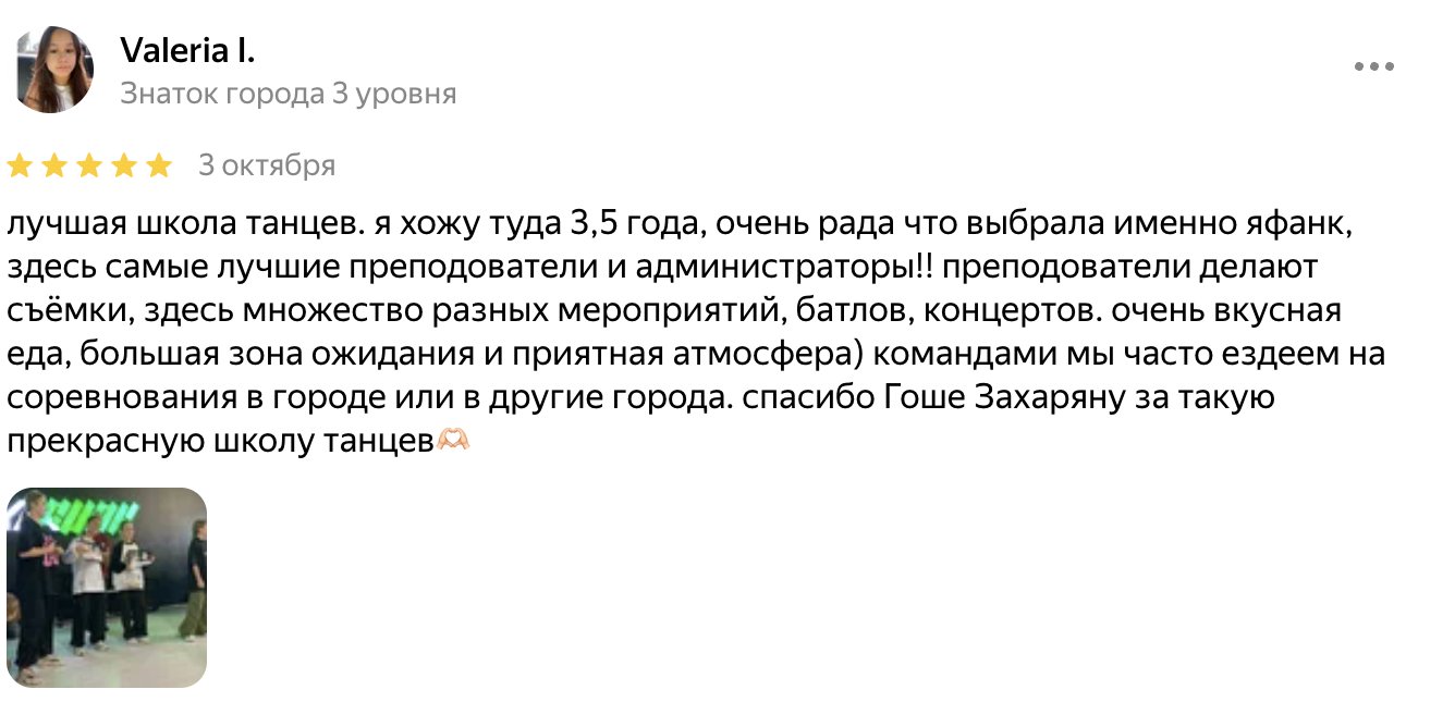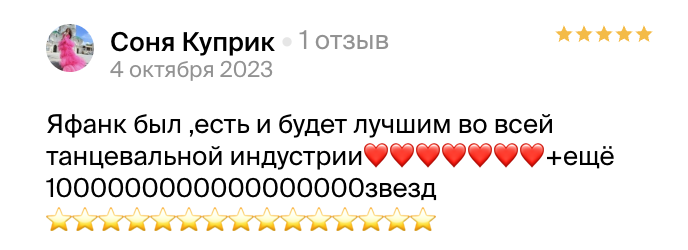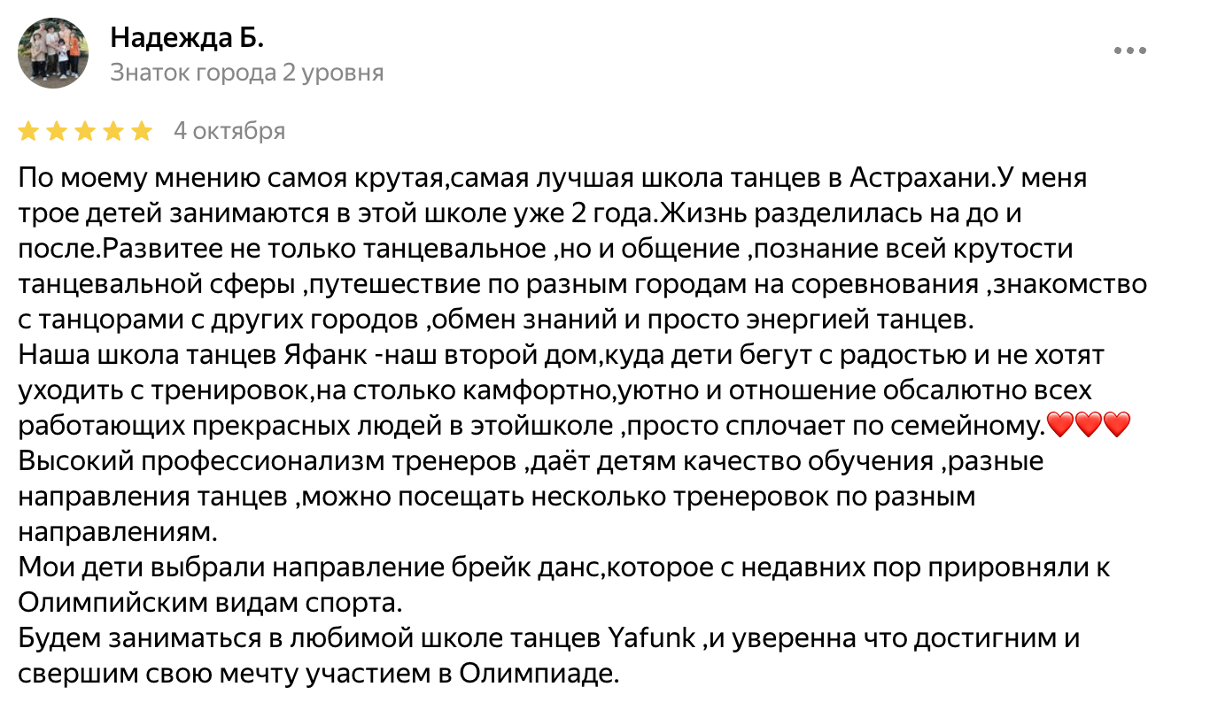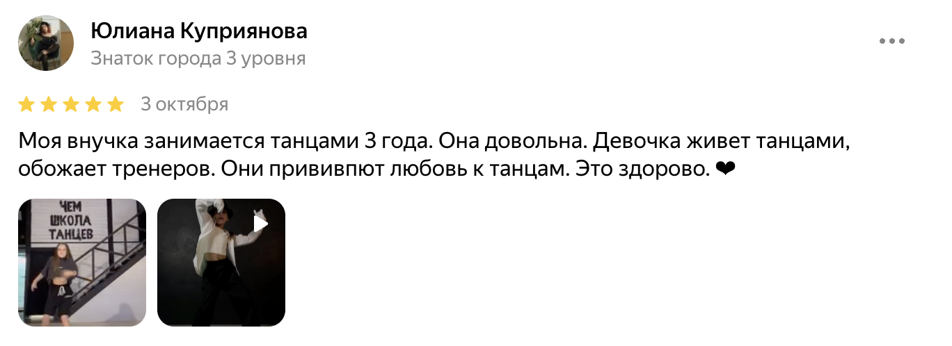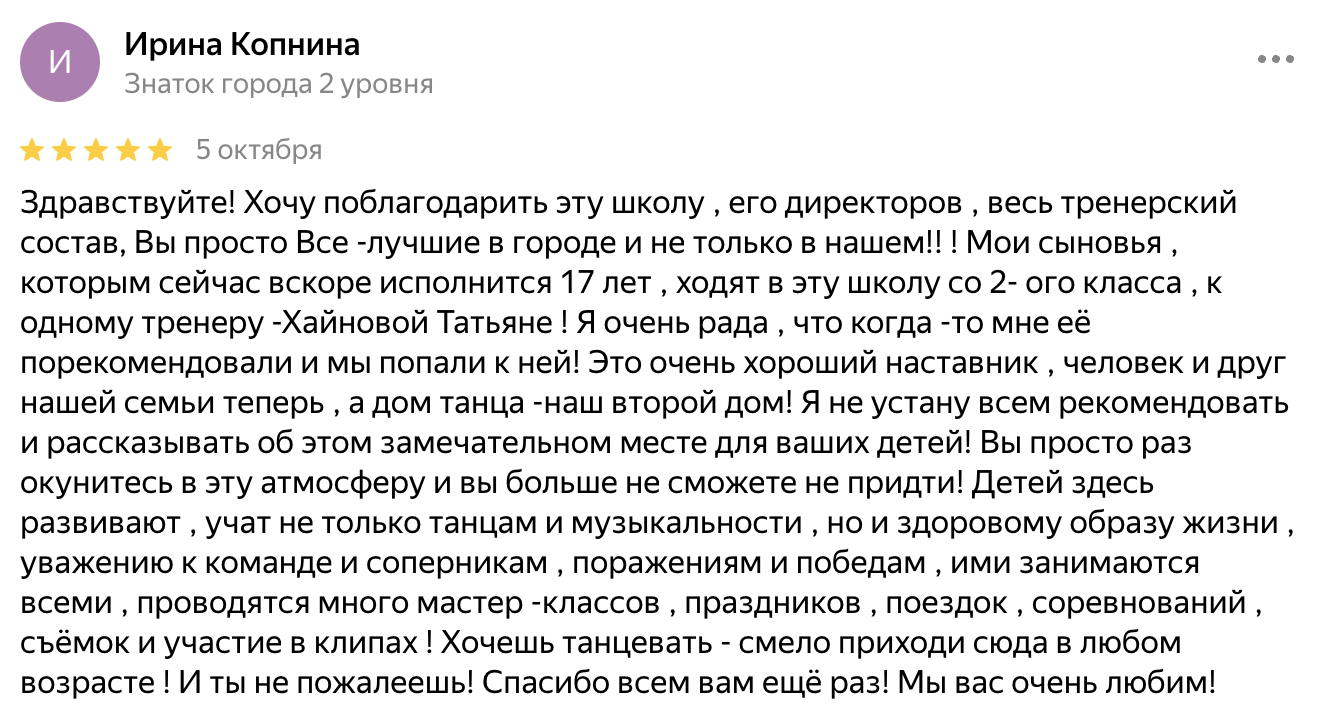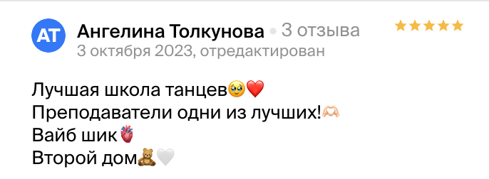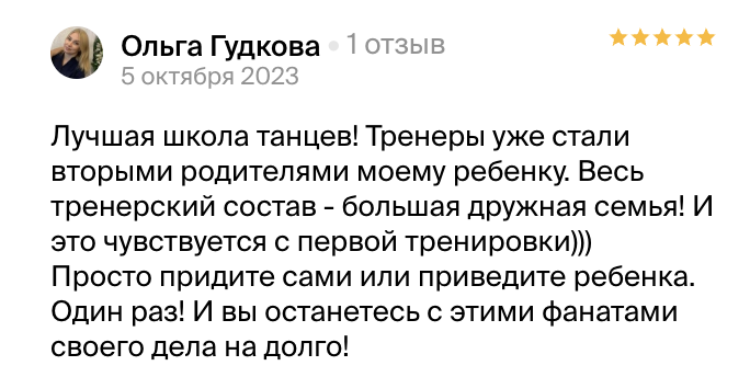 Мы сильно верим во влияние искусства на жизни людей и стремимся не только передать нашу любовь к танцу, но и помочь нашим ученикам достичь своих целей и максимального потенциала.