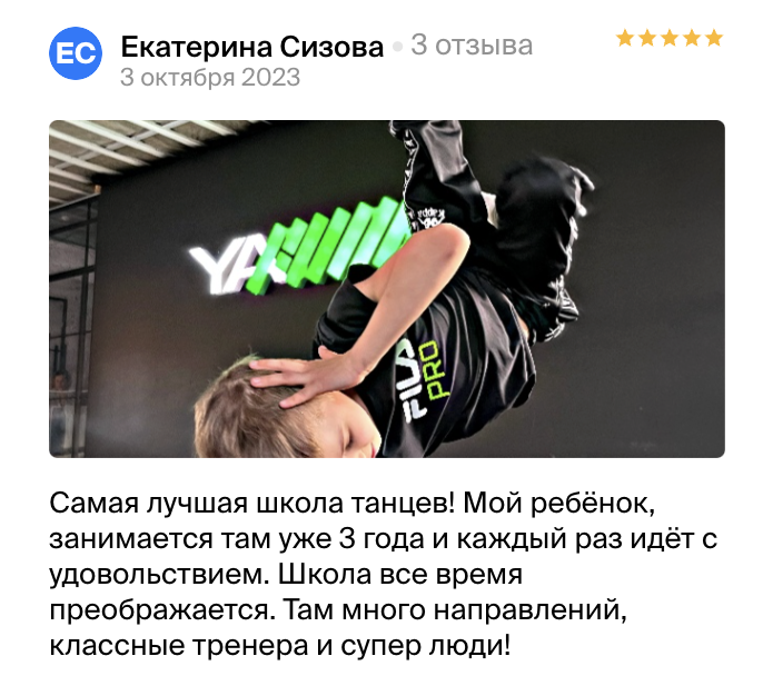 большое количество интереснейших мероприятий: батлов, тематических вечеринок, мастер-классов от лучших танцоров России и мира, поездок на соревнования в другие города и многое другое